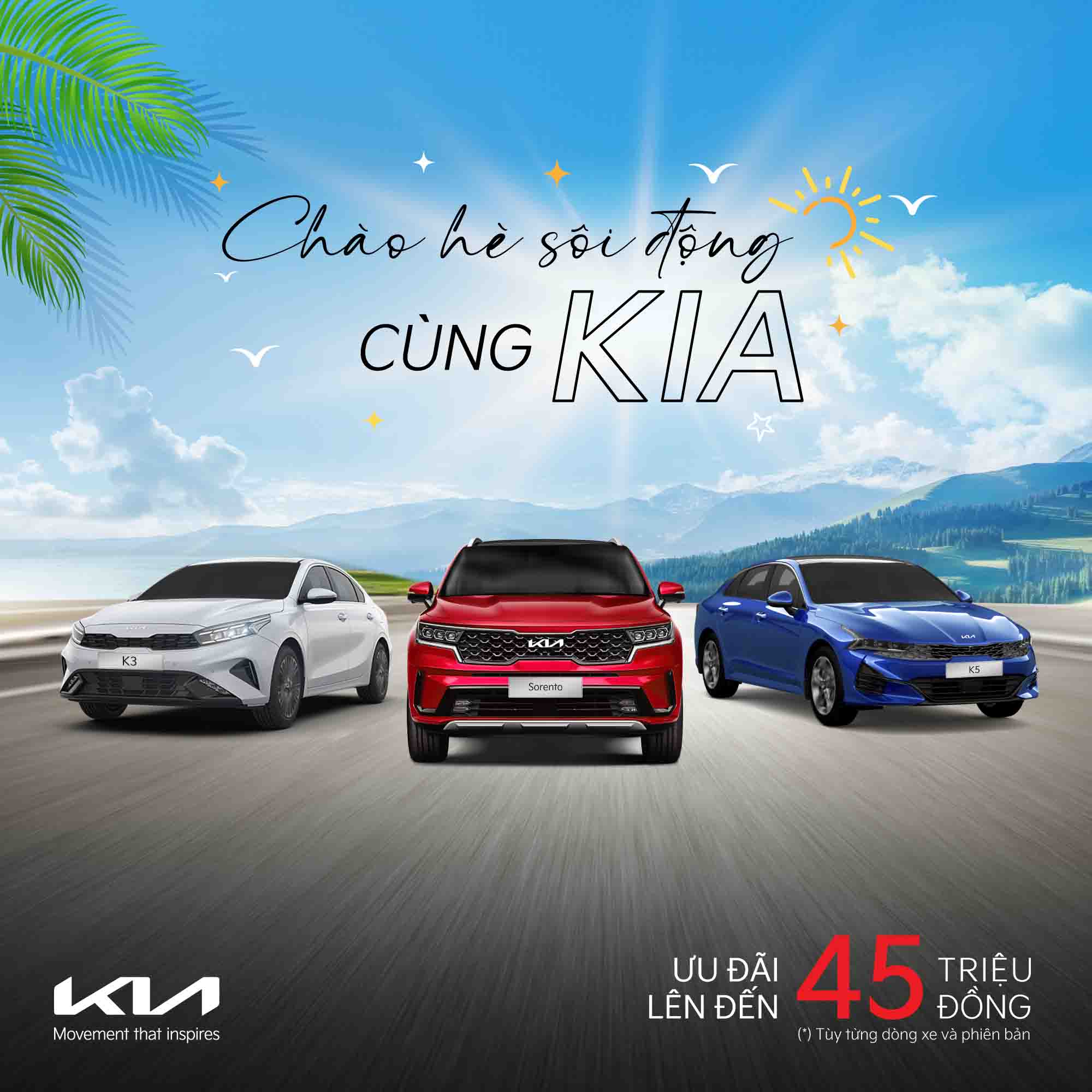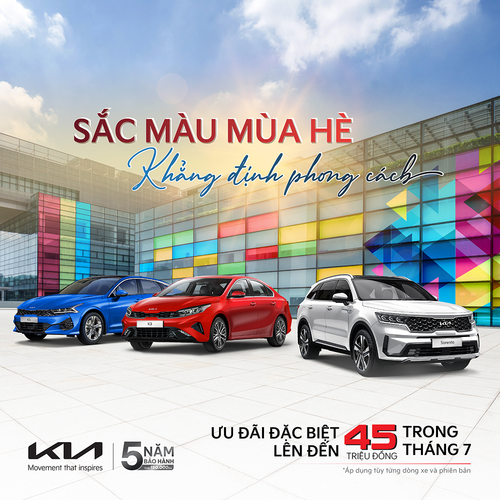 Từ 01/07 - 31/07/2024, Kia Việt Nam tiếp tục mang đến cơ hội sở hữu xe Kia với mức giá tốt cho khách hàng khi gia tăng ưu đãi giá đặc biệt cho các dòng xe với mức cao nhất lên đến 45 triệu đồng, áp dụng tùy theo dòng xe và phiên bản.