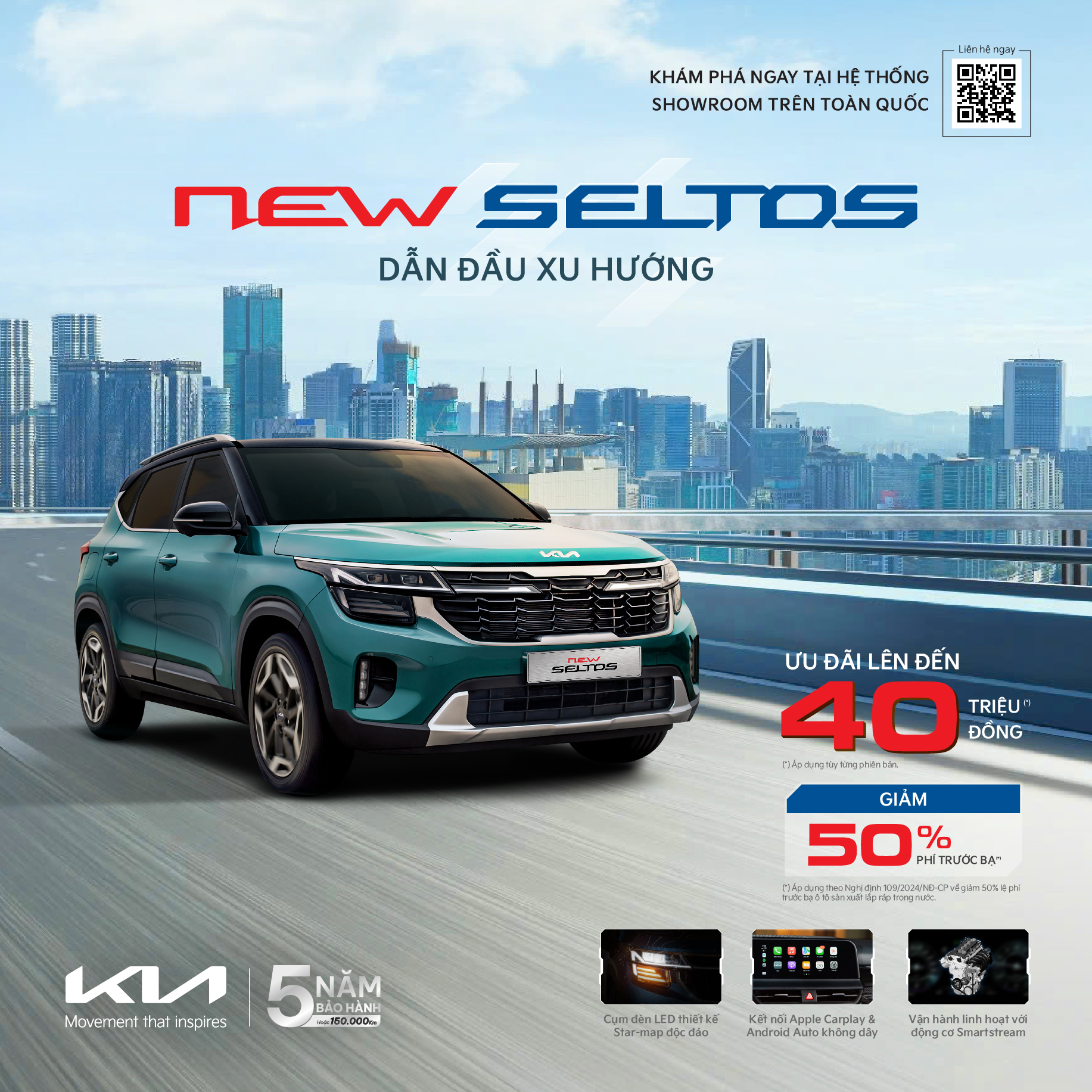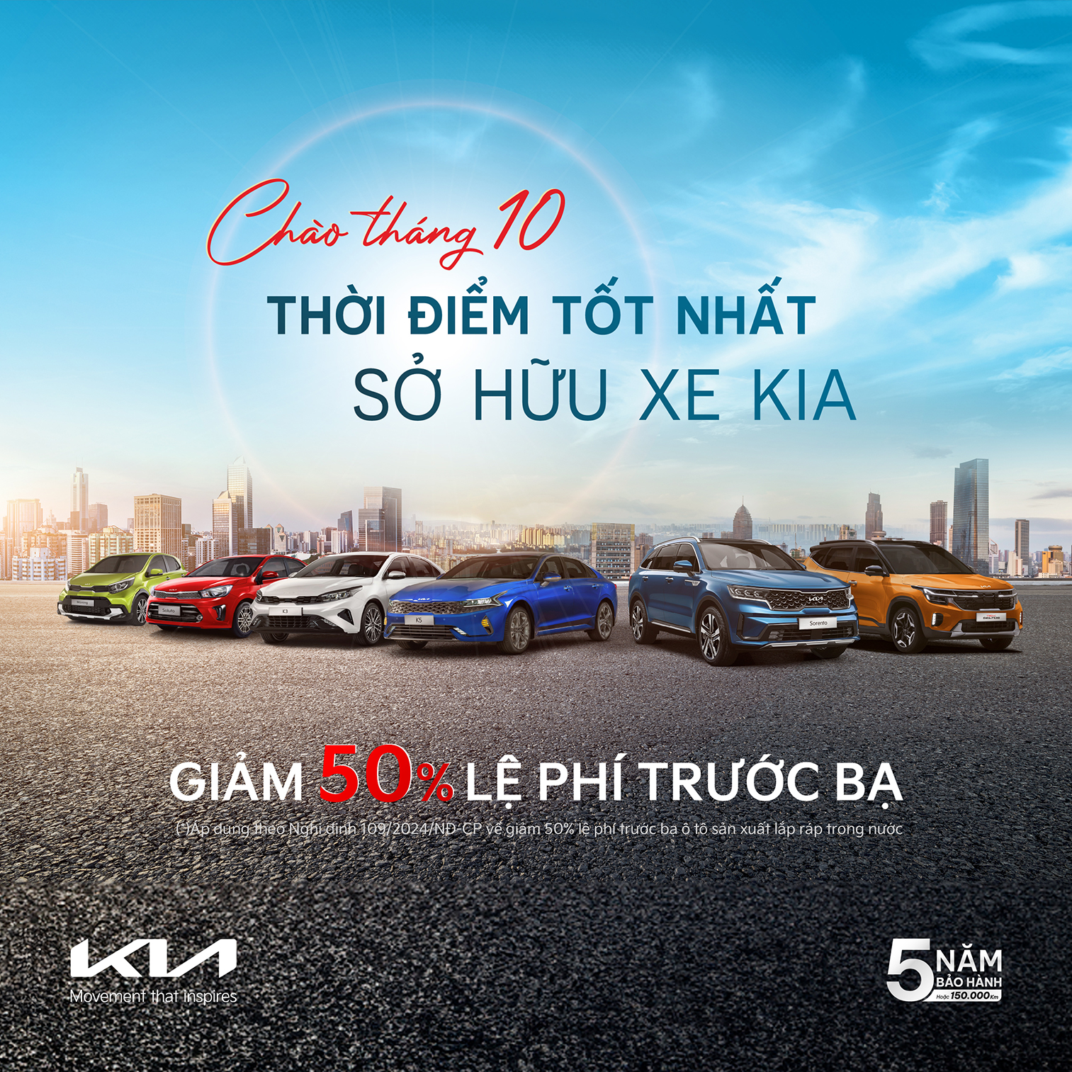 Khách hàng có cơ hội sở hữu xe Kia với ưu đãi kép bao gồm ưu đãi giá bán và quà tặng bảo hiểm vật chất khi sở hữu xe Kia từ ngày 16/9. Chương trình áp dụng theo các điều kiện và điều khoản từ các thương hiệu. Bên cạnh đó, với lợi thế lắp ráp trong nước, các mẫu xe Kia còn được áp dụng thêm chính sách giảm 50% lệ phí trước bạ.